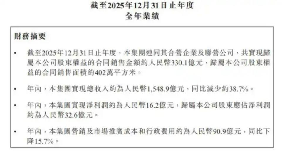 3月30日碧桂园发布2025年财报,2025年碧桂园营收1549亿元,虽然同比下滑38.72%,但归母净利润却由上一年同期的-328.4亿元提升至32.61亿元,这也是最近四年来碧桂园首次盈利,在亏损2172.92亿元之后,经过行业深度调整后,碧桂园打响了头部房企扭亏为盈的第一枪。