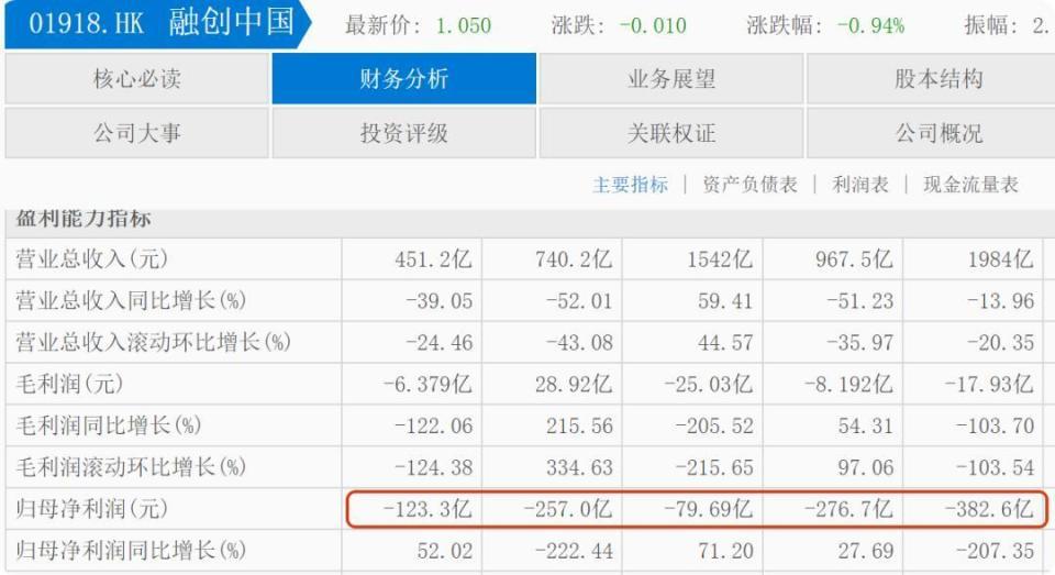 相比碧桂园32.61亿元的净利润,万科则巨亏820亿元,融创中国同样亏损123.3亿元,万科连续两年亏损超1300亿元,融创中国则连续5年亏损,5年亏损1119.29亿元。