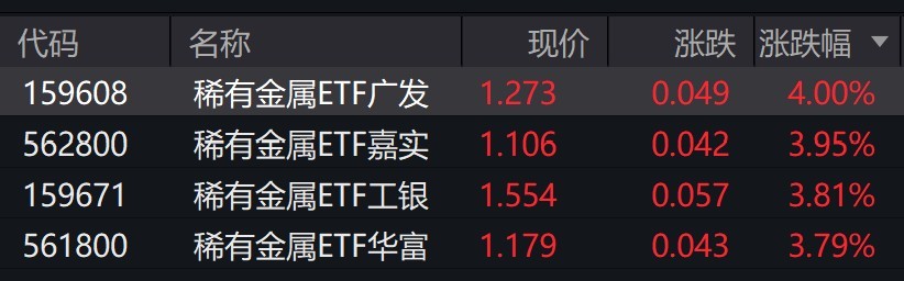 受盘面影响,稀有金属相关ETF涨约4%。