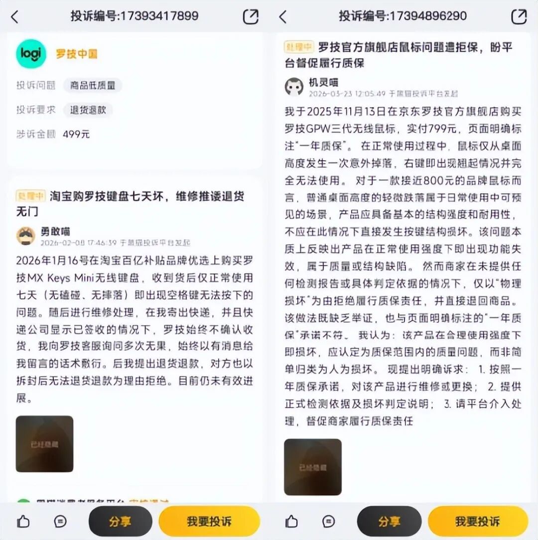 据黑猫投诉平台公开数据,截至2026年3月27日,平台内罗技相关投诉总量已达6664条,核心投诉集中在产品质量故障。